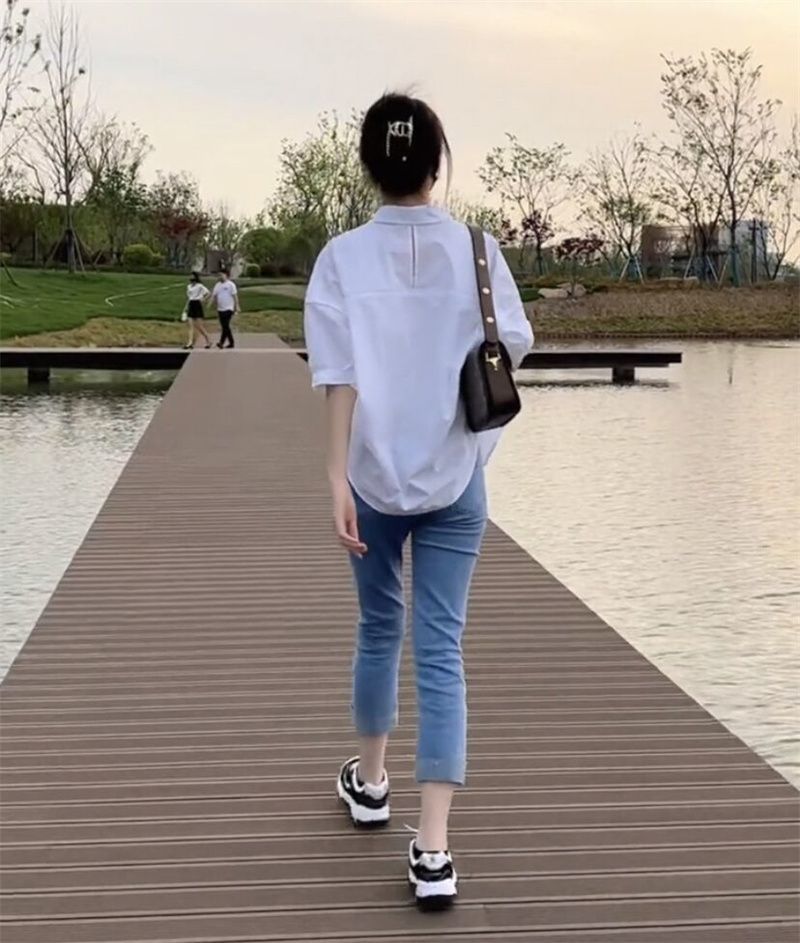 高腰垂感顯瘦寬鬆闊腿百搭直筒牛仔褲