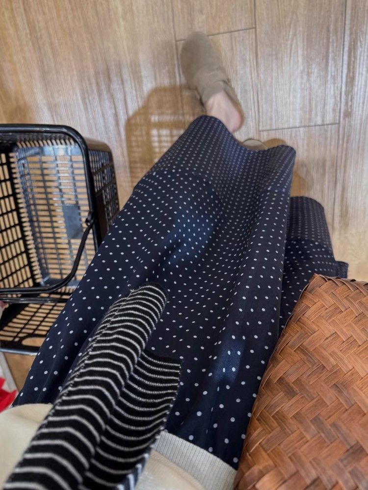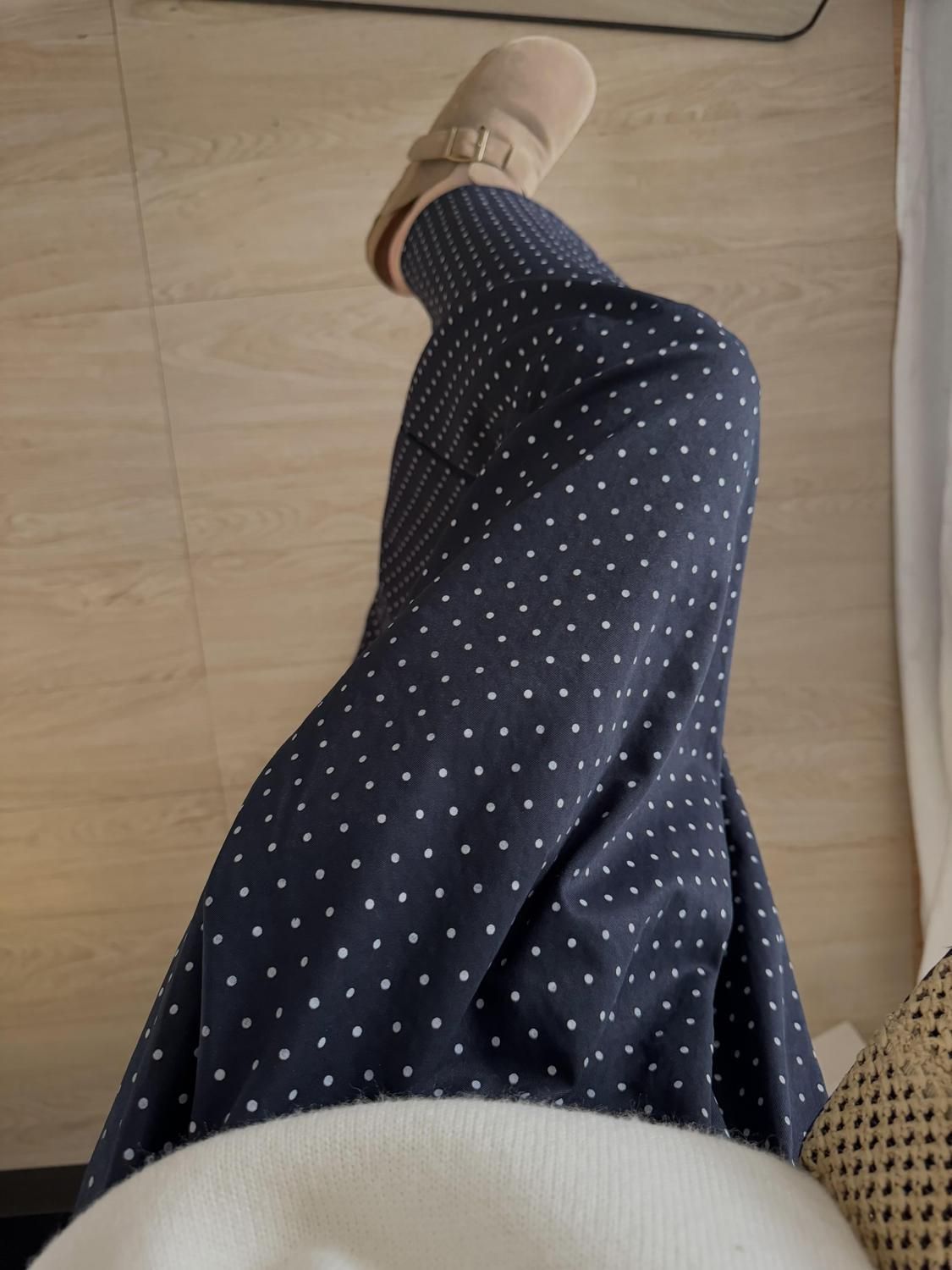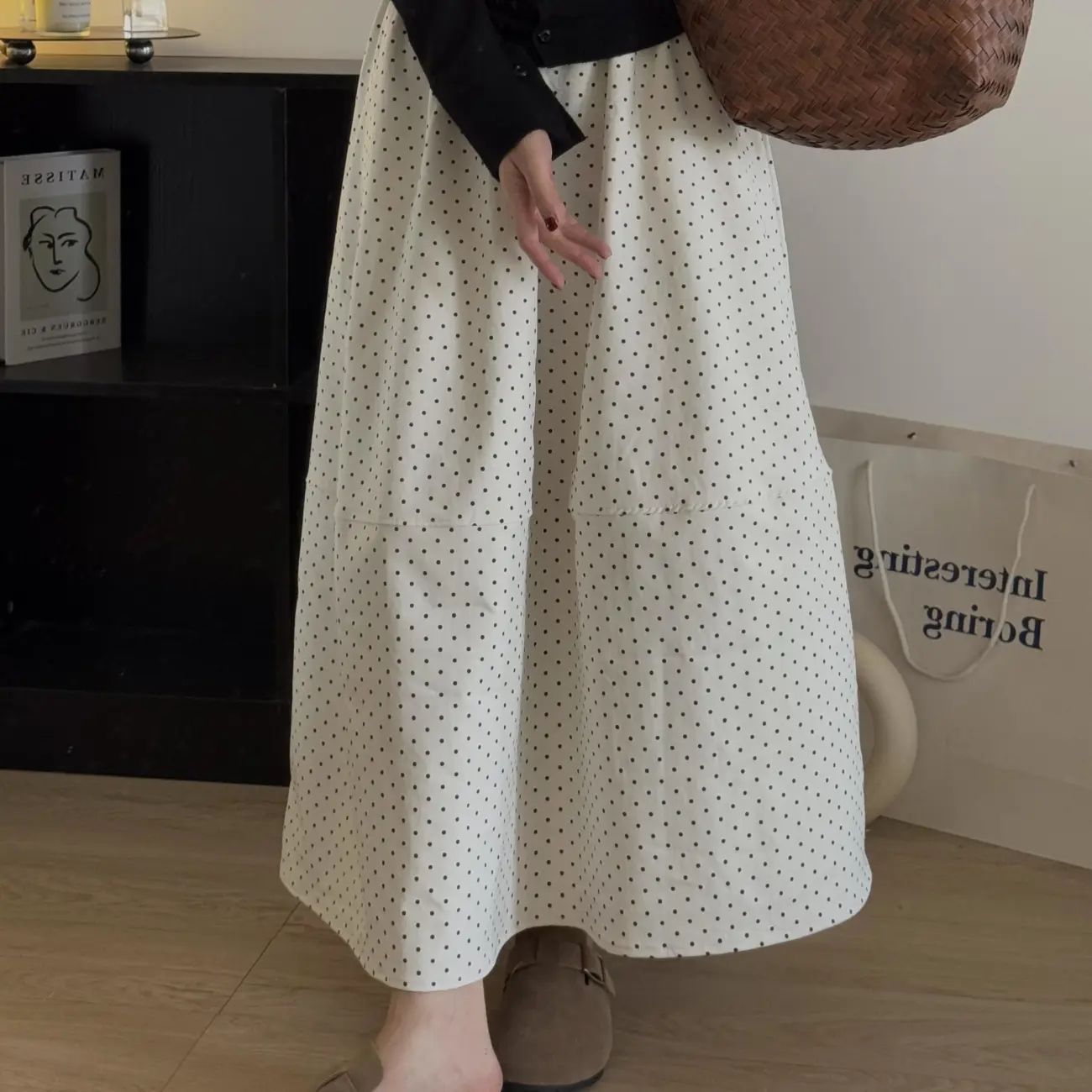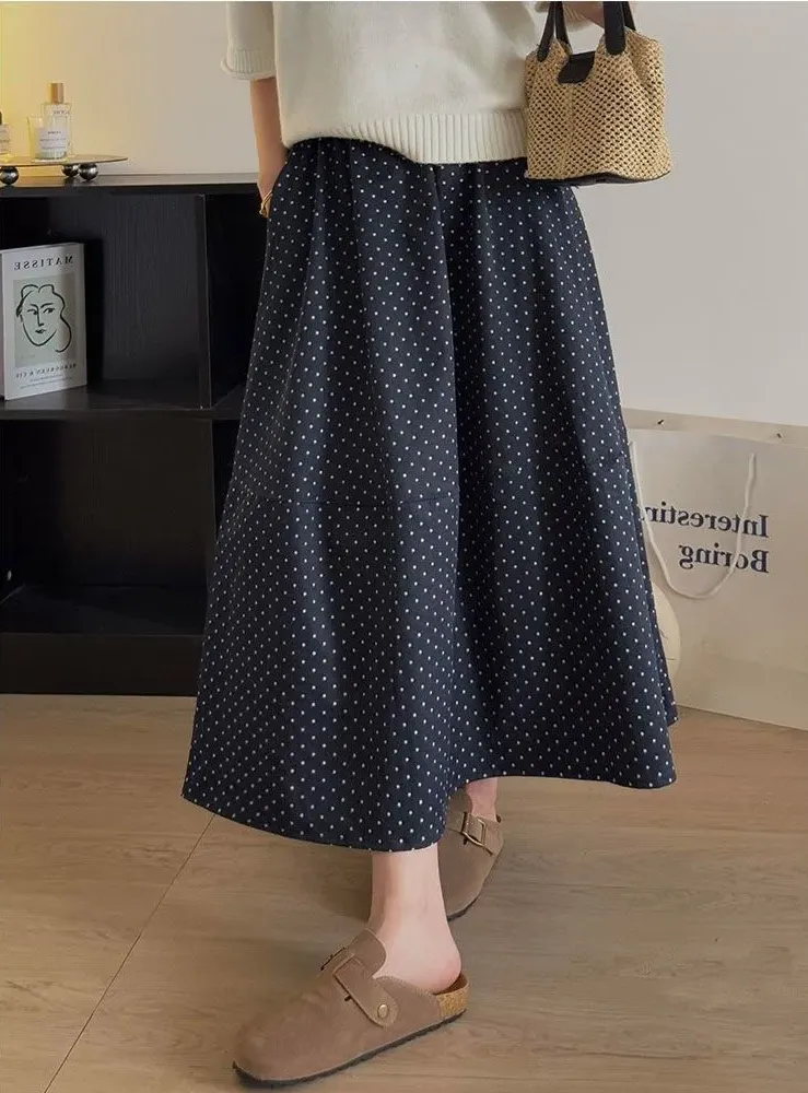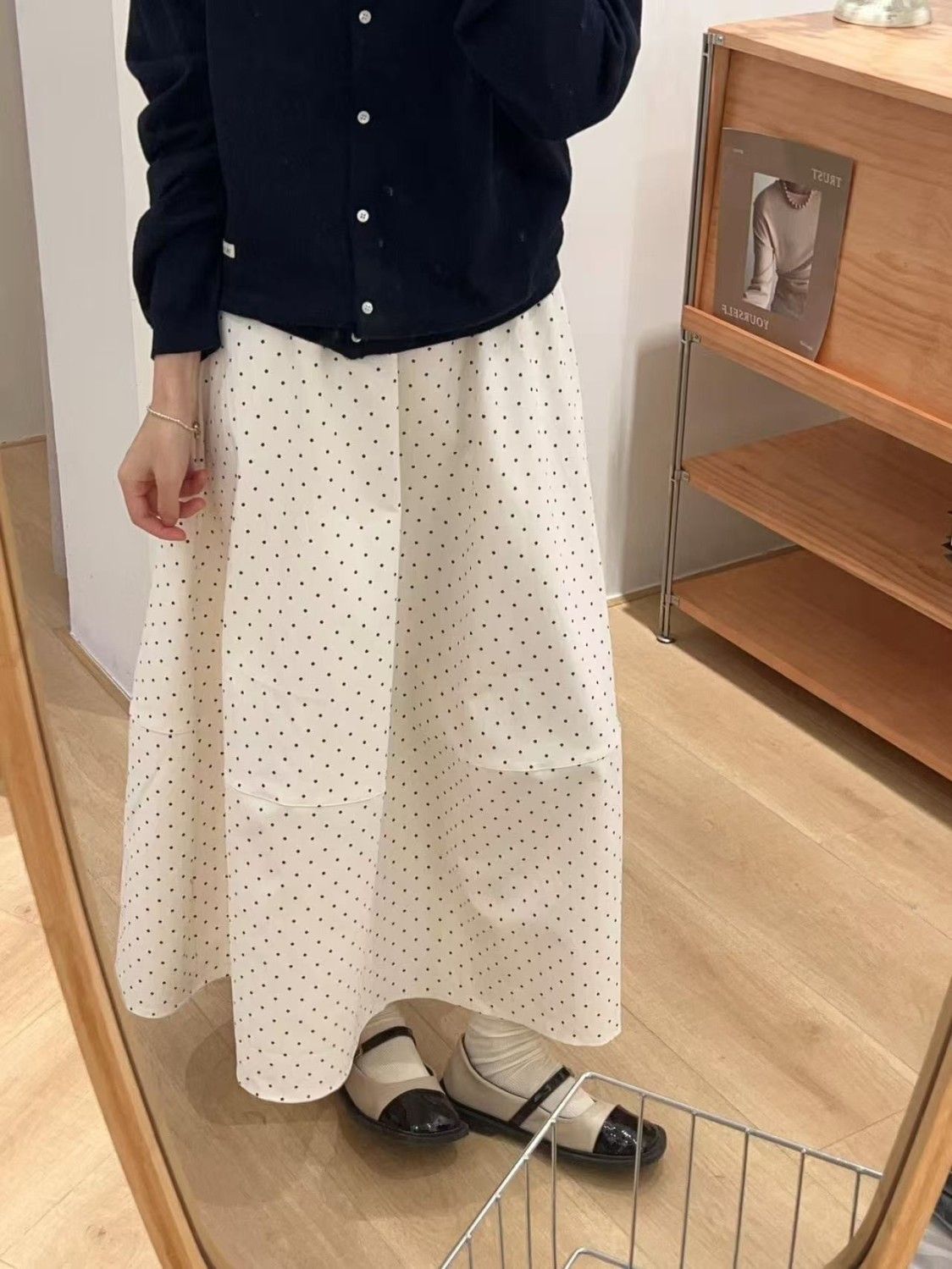 法式波點寬鬆顯瘦垂感中長版A字半身裙