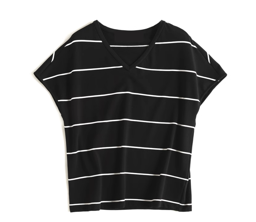 時尚v領涼爽透氣條紋百搭休閒短袖