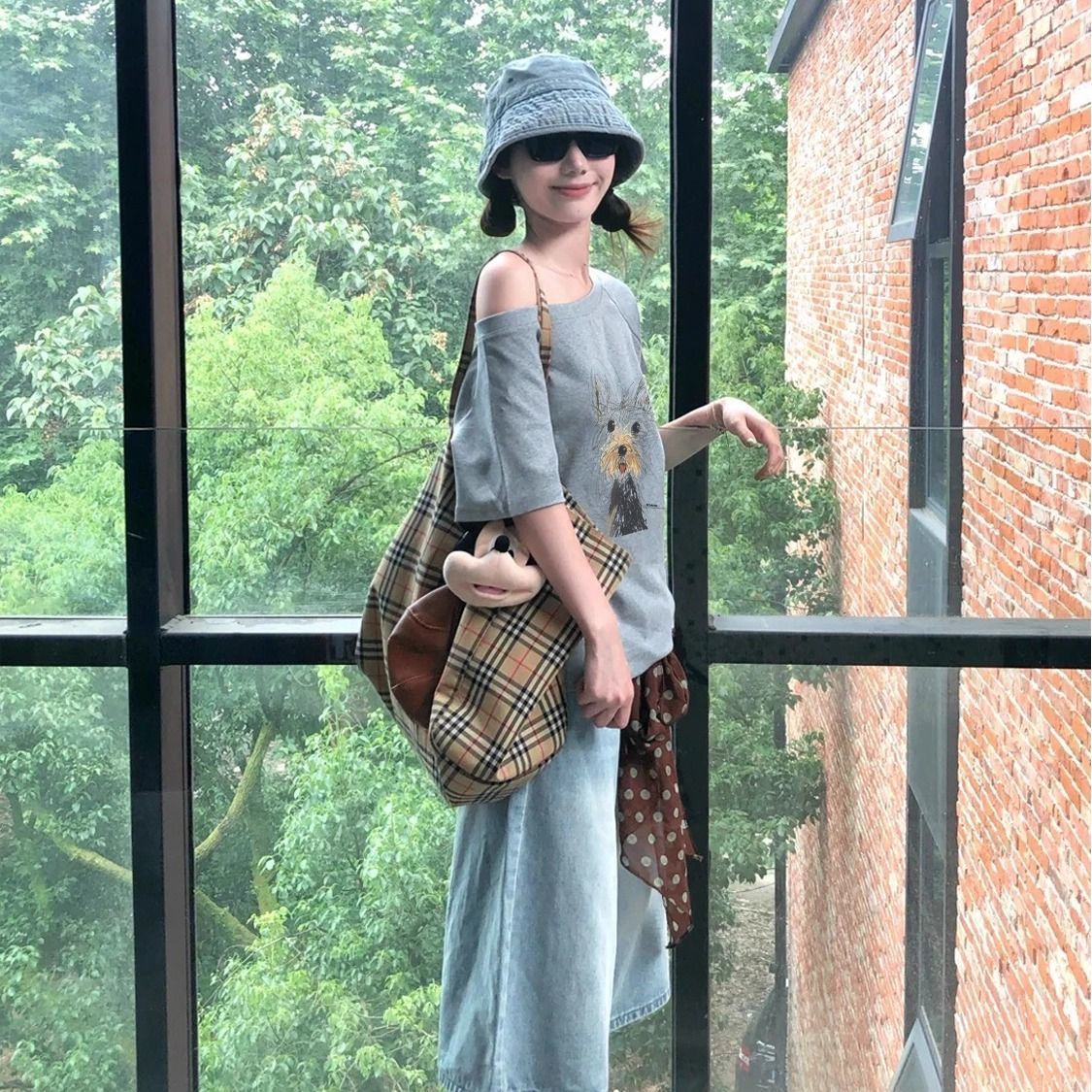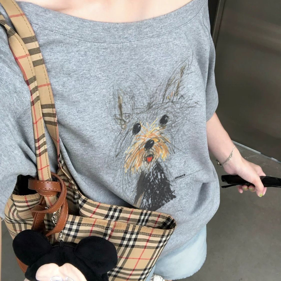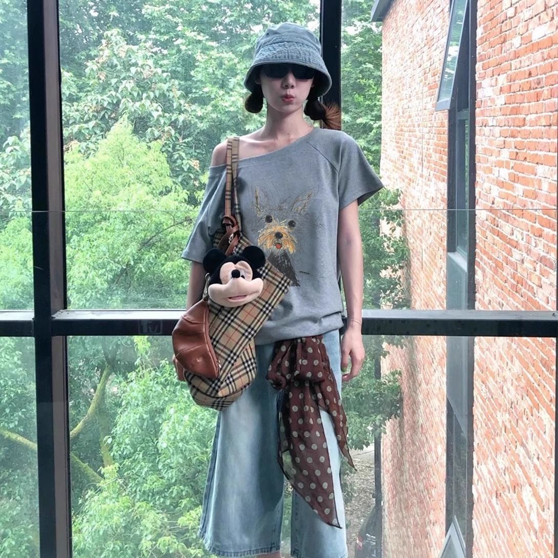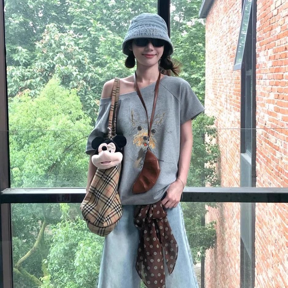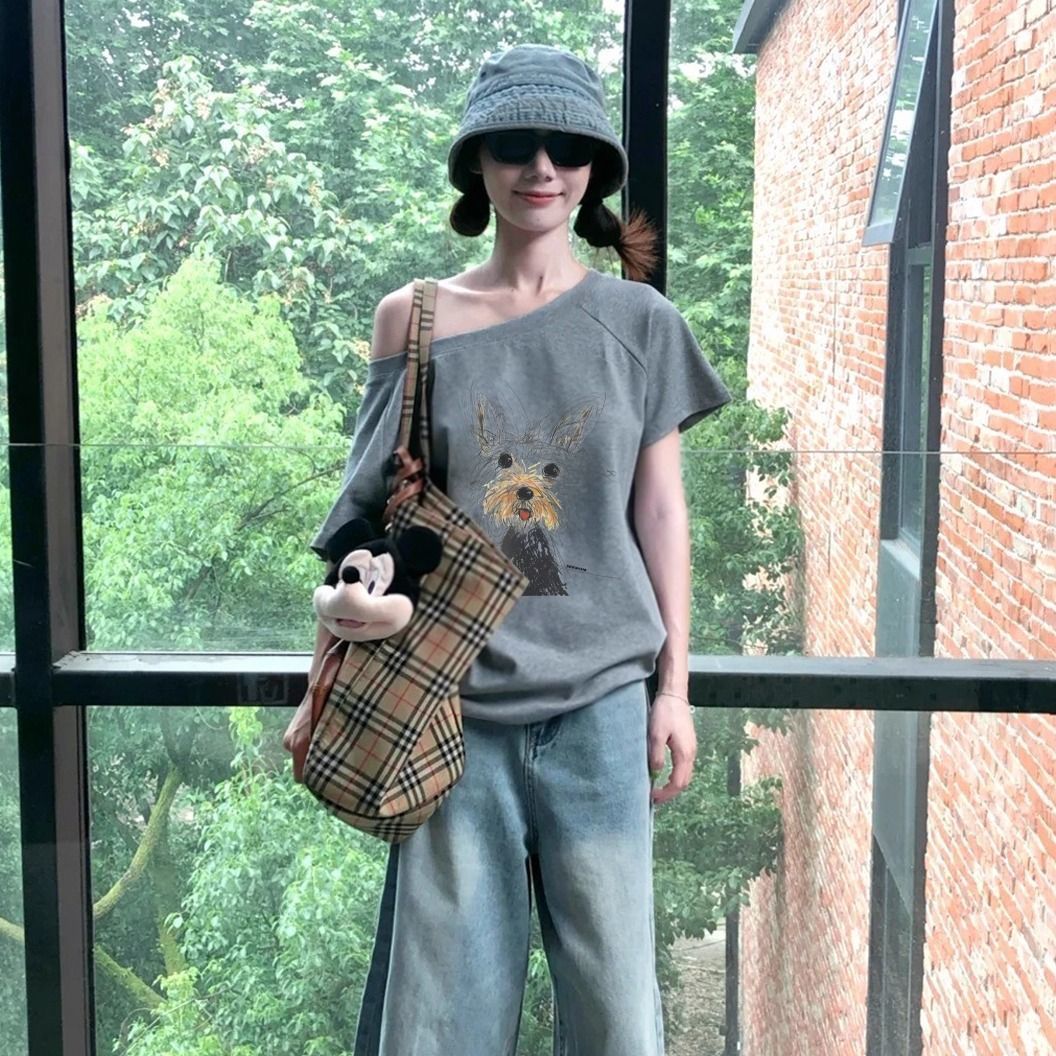 休閒chic感潮流鬆弛通勤氣質斜肩t恤