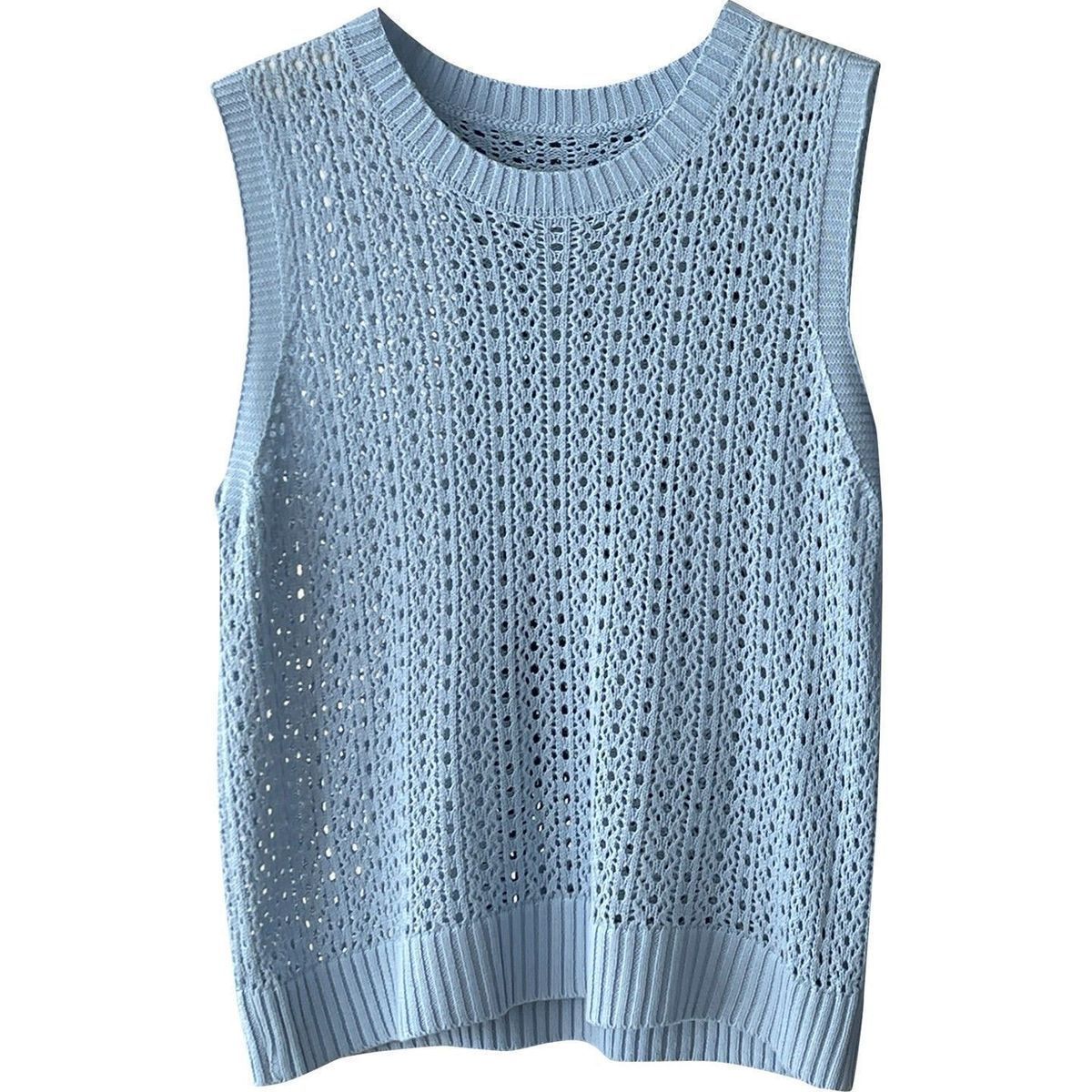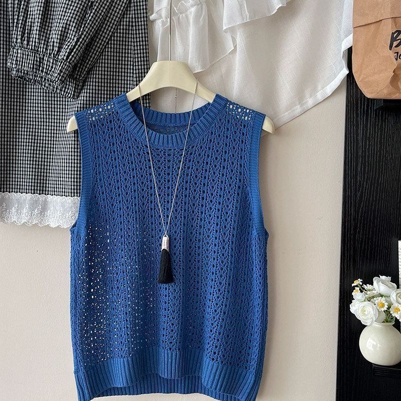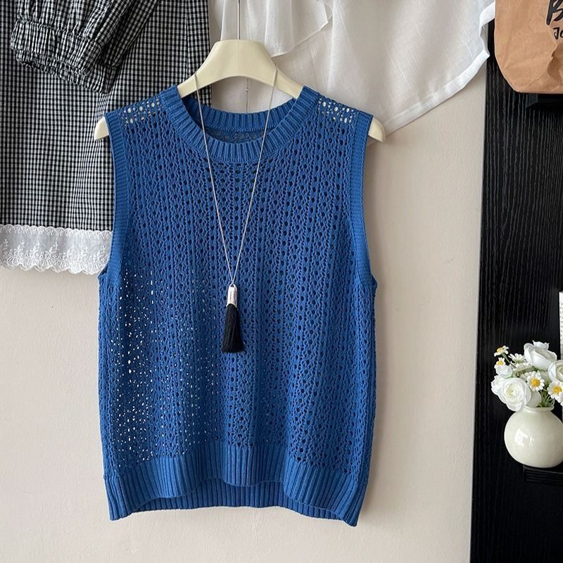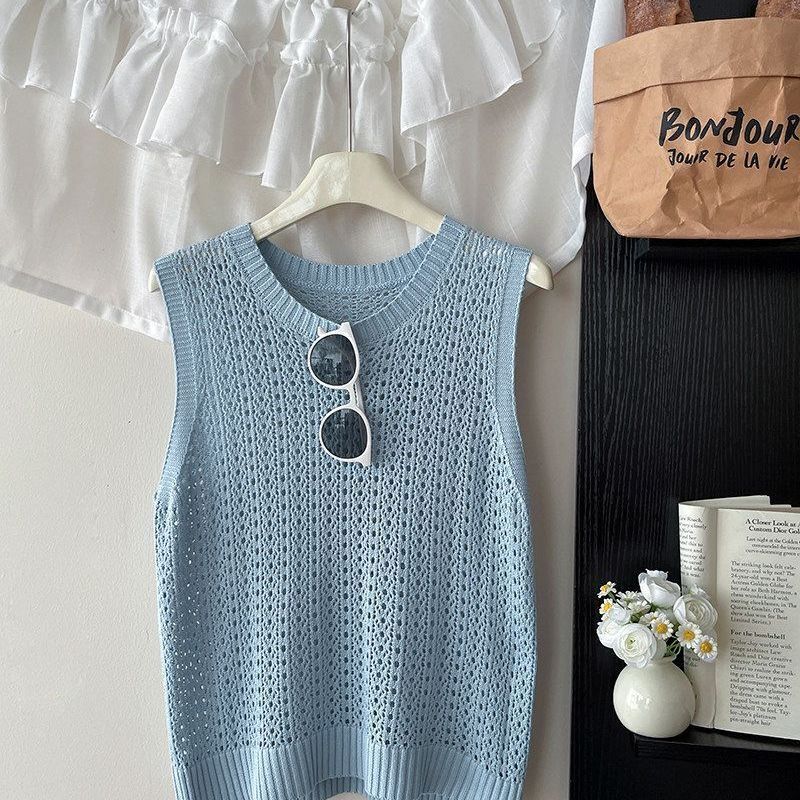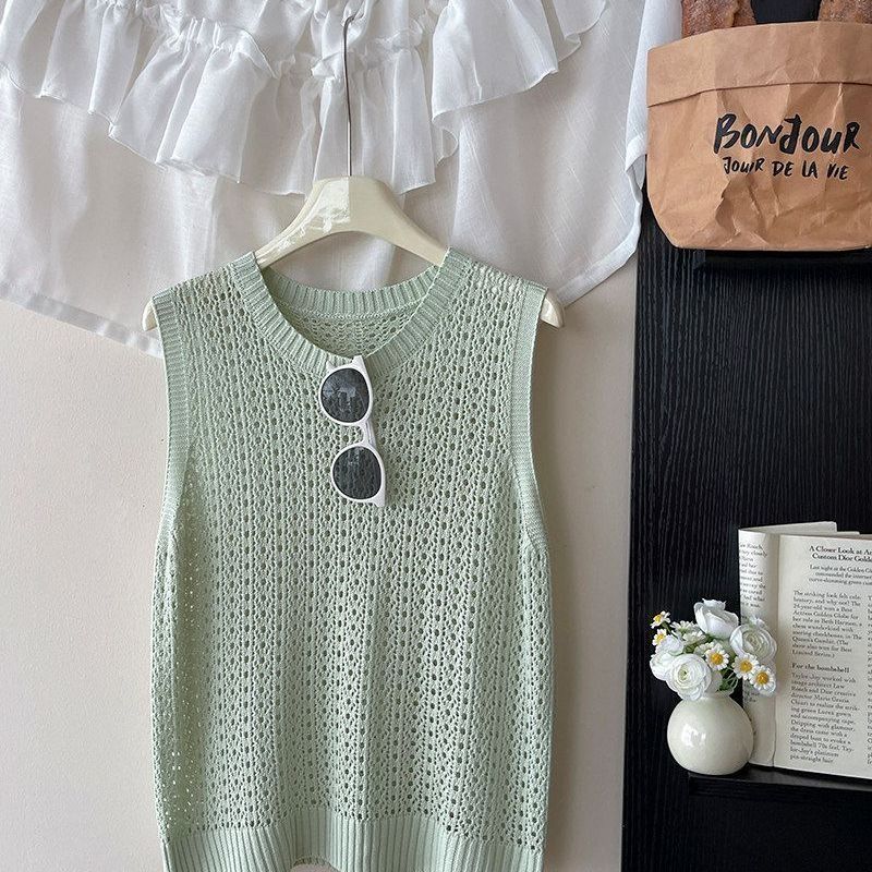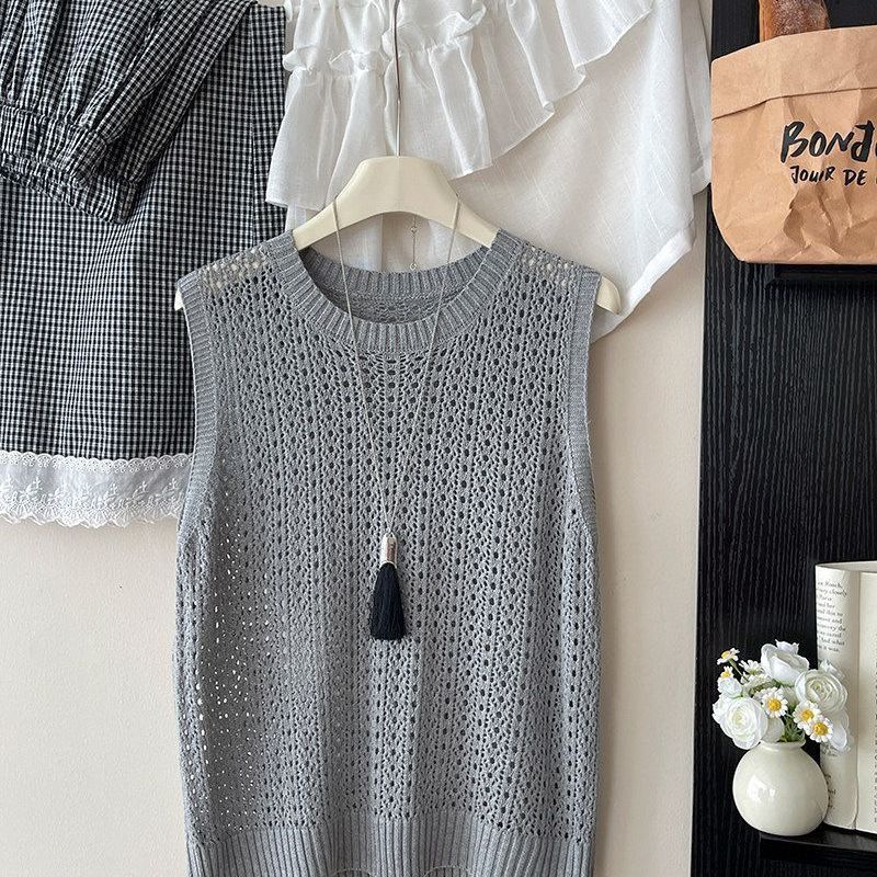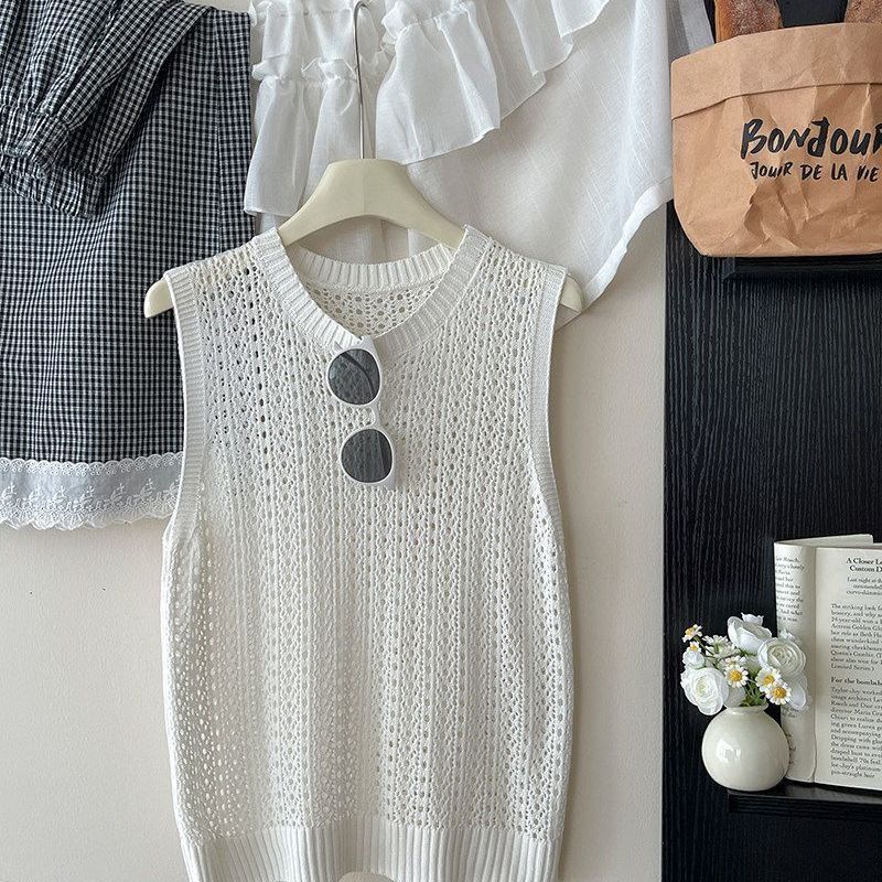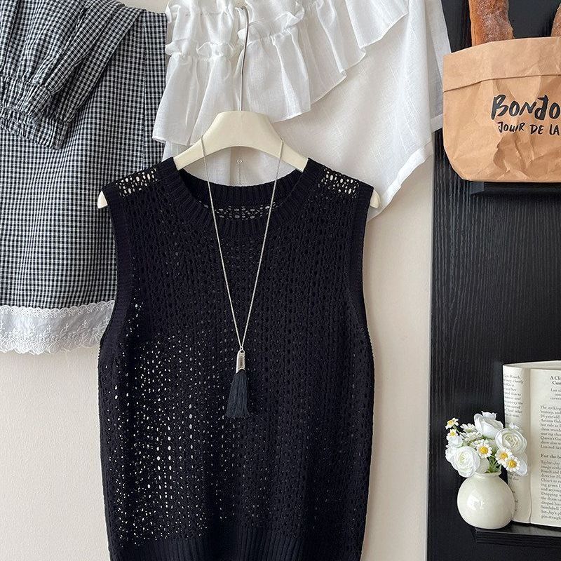 韓系鏤空寬鬆顯瘦薄款無袖針織背心