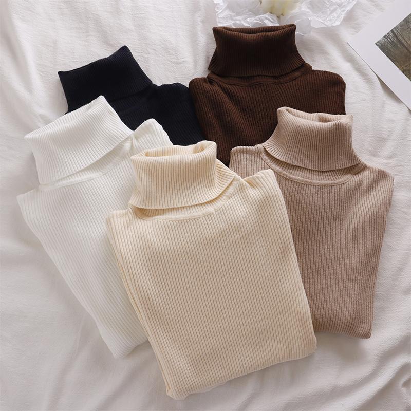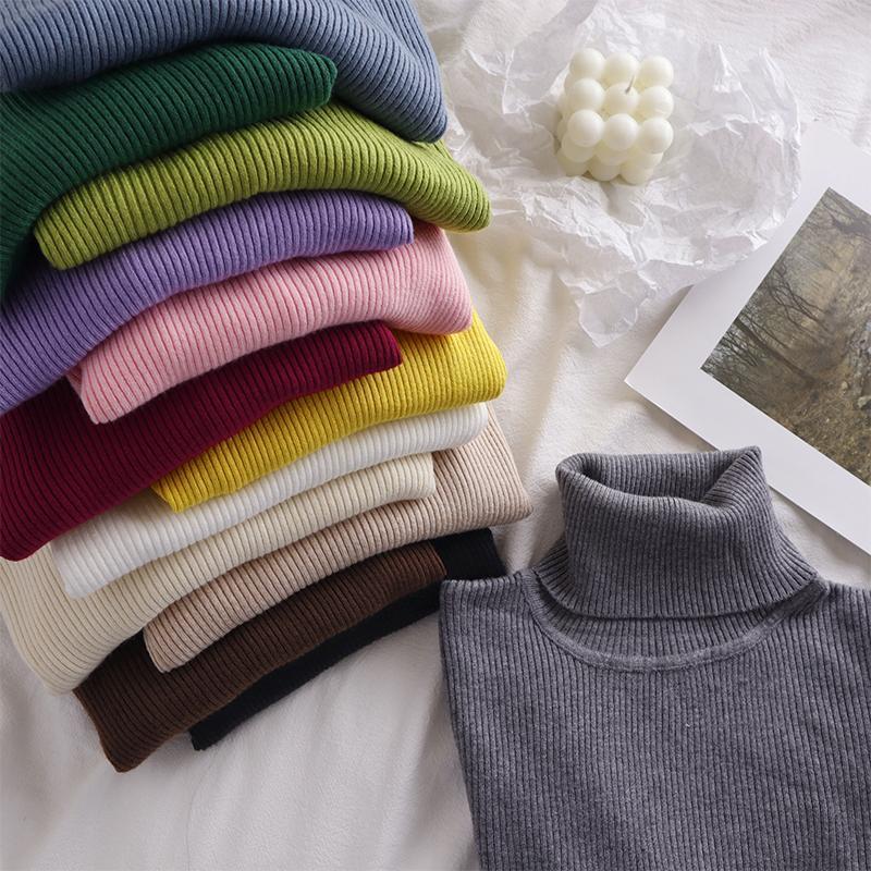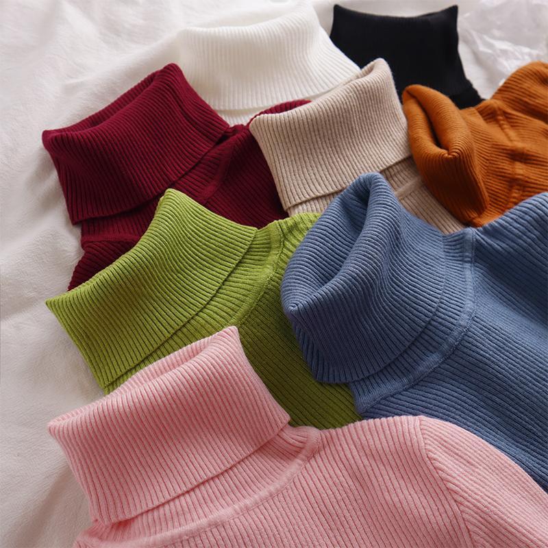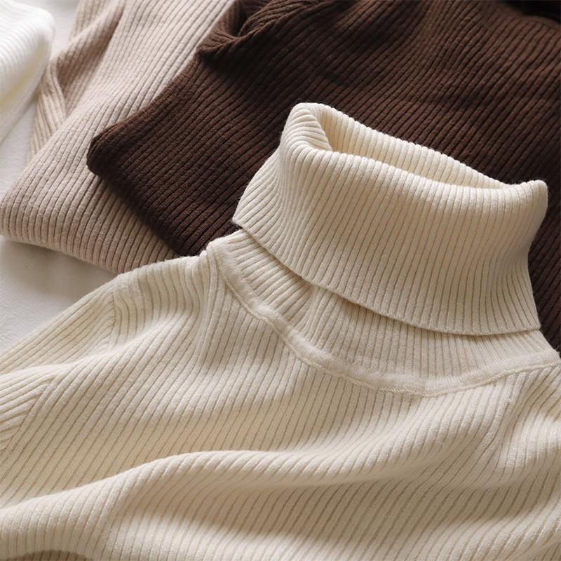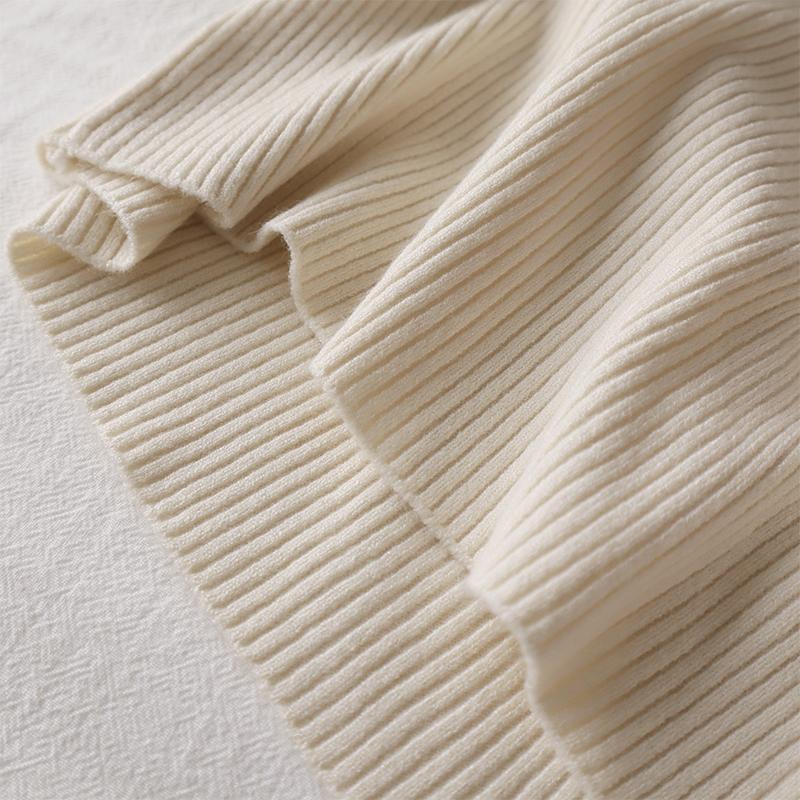 素色寬鬆半高領袖口貼標水貂絨針織衫